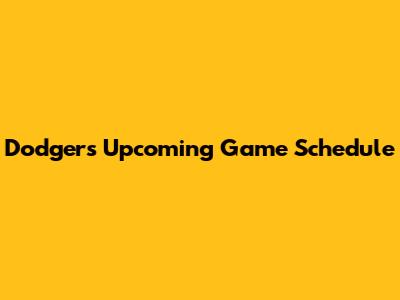 Dodgers Upcoming Game Schedule