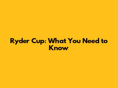 Ryder Cup: What You Need to Know